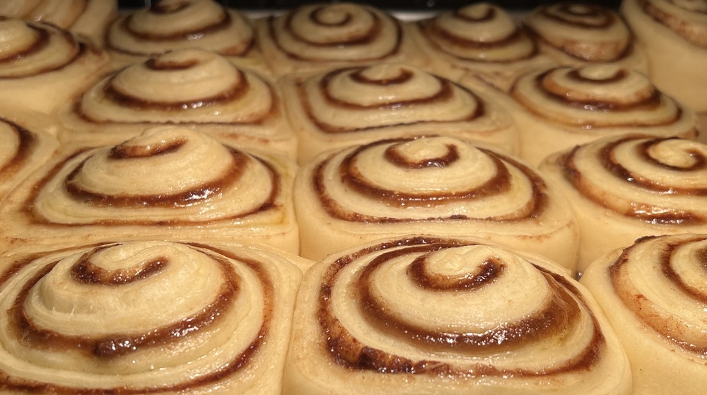 Enjoy our soft and gooey cinnamon rolls, drizzled with the perfect amount of cream cheese frosting— a delightful treat for any time of day.
