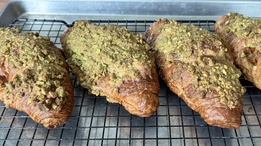 Flaky and buttery goodness. We have almond cream and pistachio cream filled croissants. Both are perfect for breakfast or as a snack.